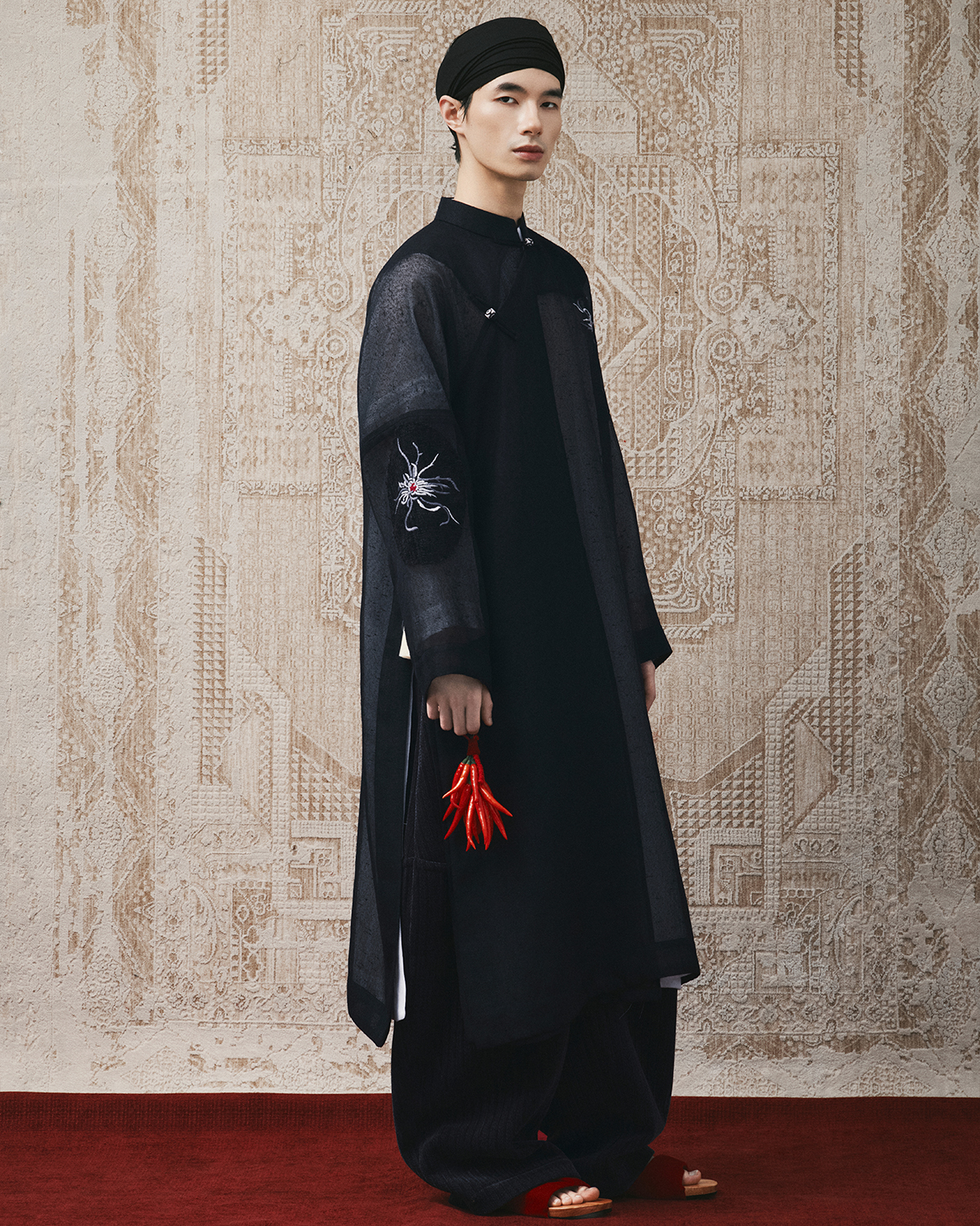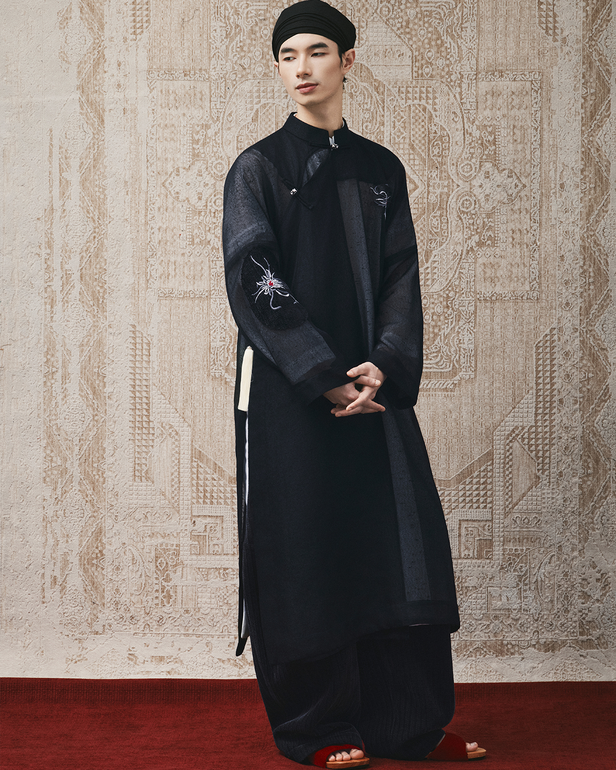 Chất liệu: Tơ sồi Họa tiết: Thêu tay hoa cúc Chi tiết: Cúc đá Thiên Châu Tây Tạng