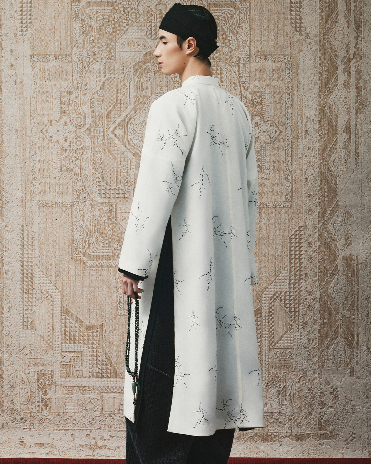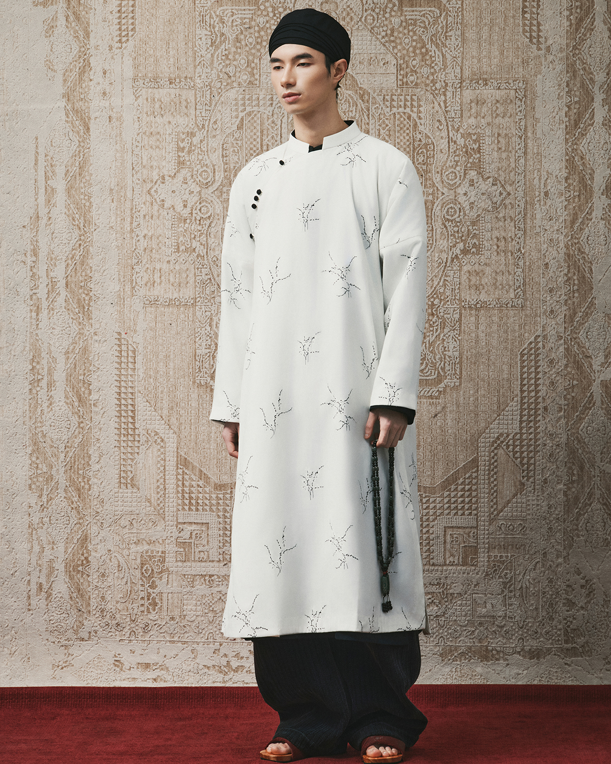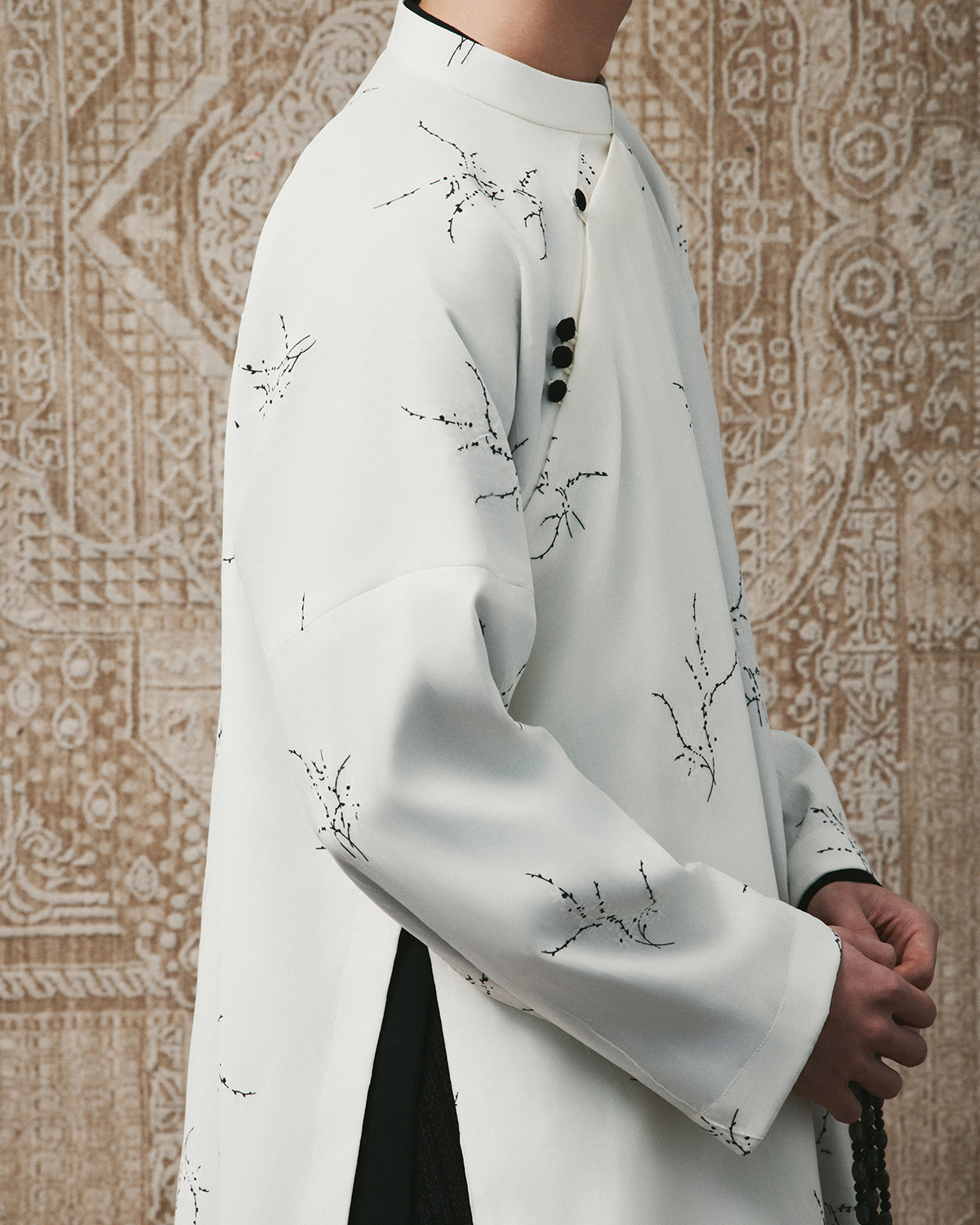 Chất liệu: Tơ cotton Lót: Lụa tổng hợp Họa tiết: Hoa đen trắng Chi tiết: Cúc bọc vải