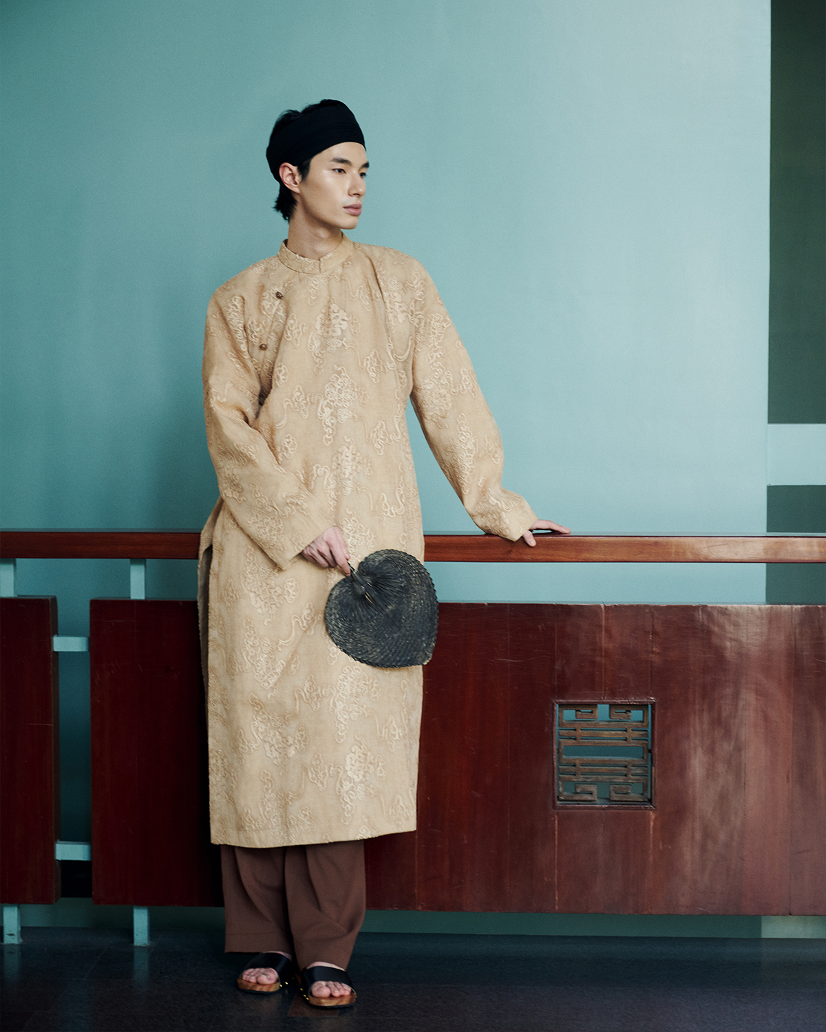 Chất liệu: Tơ đũi Lót: Tơ đũi Họa tiết: Thêu len hiện đại Chi tiết: Cúc đá