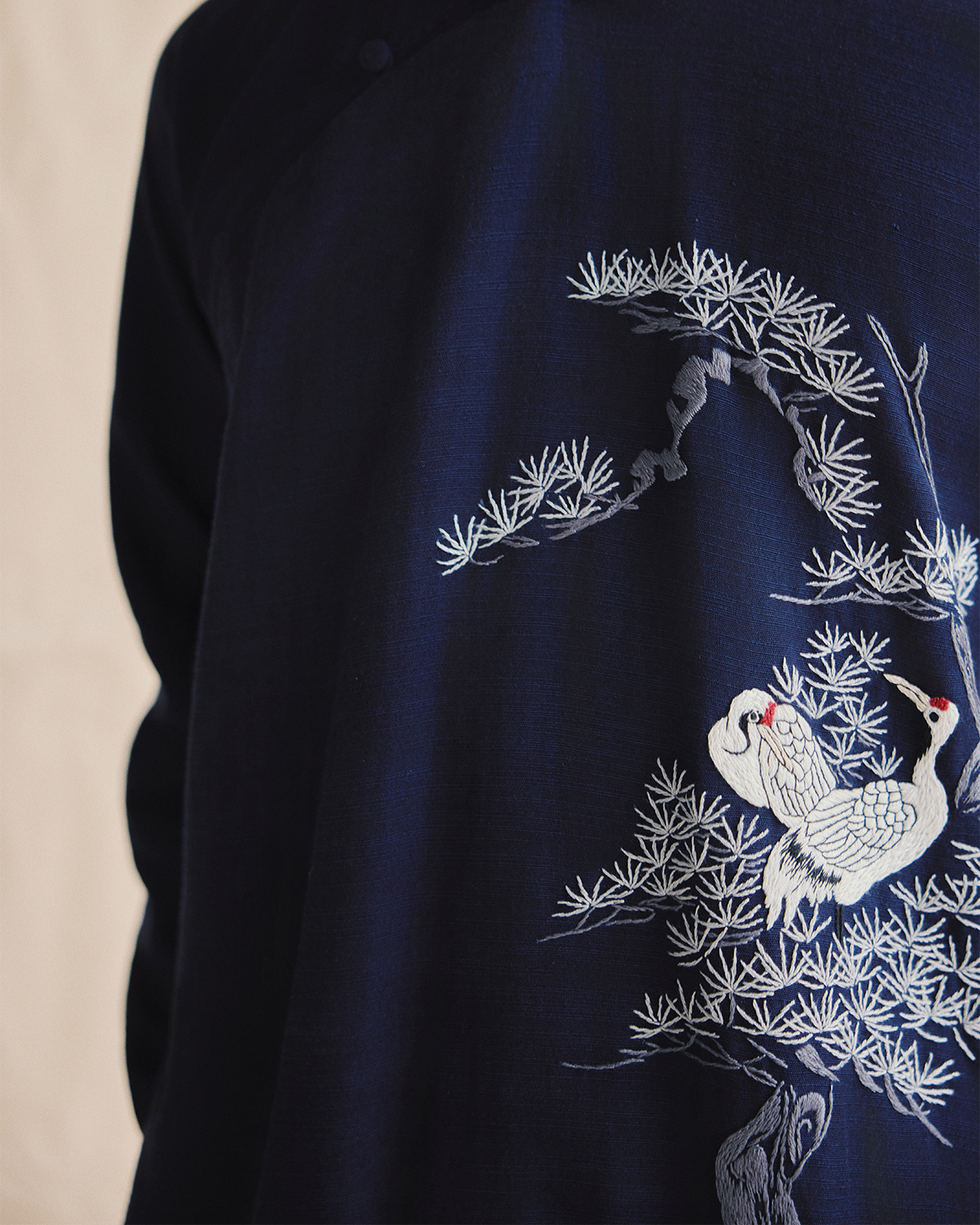 Chất liệu: Linen Họa tiết: Thêu tay thủ công con hạc và cây tùng