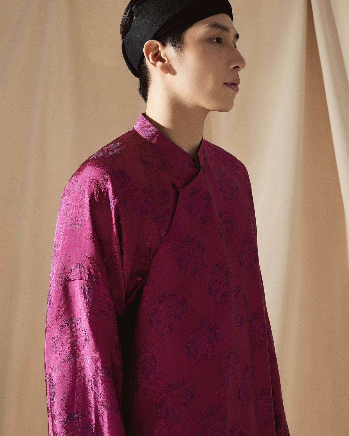 Chất liệu: 70% tơ tằm, 30% viscose Họa tiết: Dệt chìm