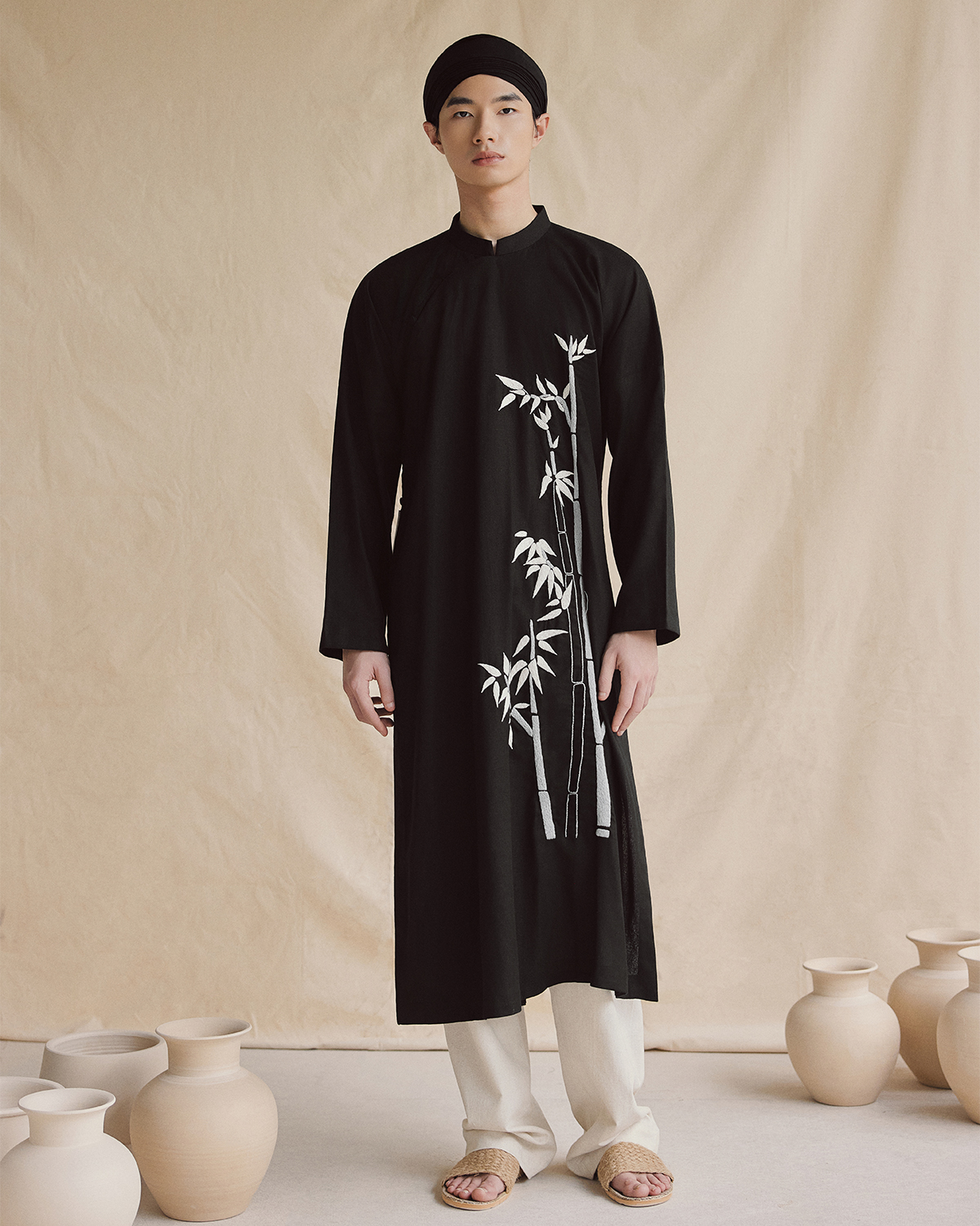 Chất liệu: Linen Họa tiết: Thêu tay thủ công khóm trúc