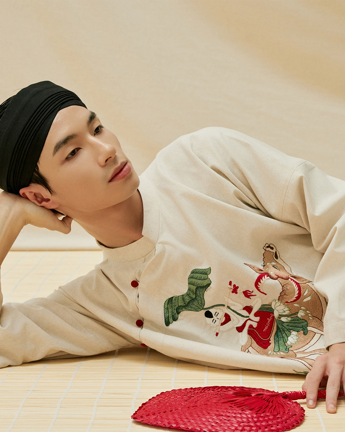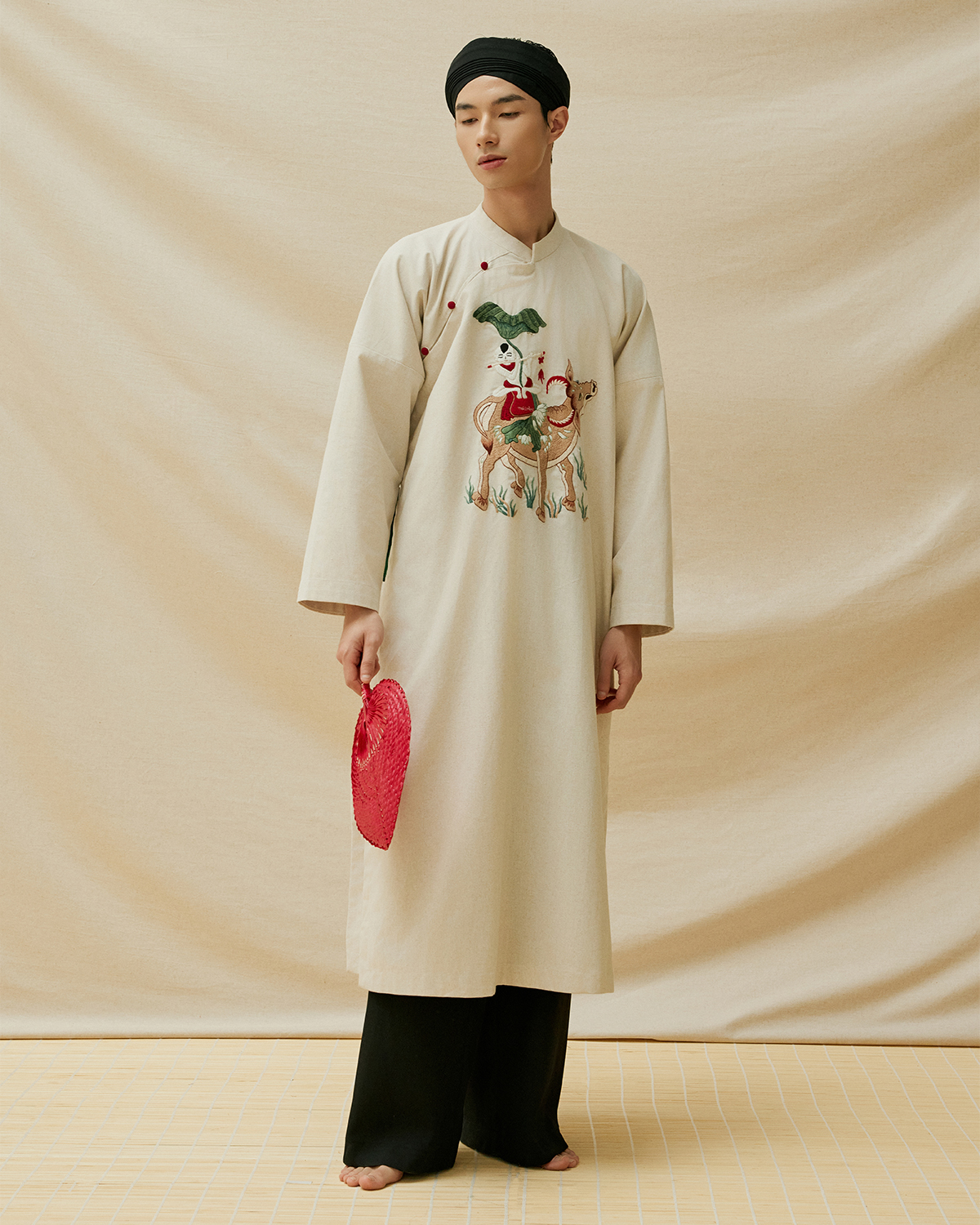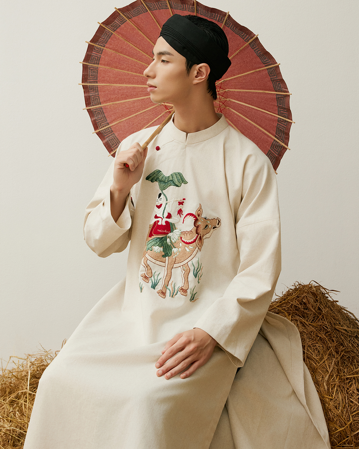 Chất liệu: Linen Họa tiết: Thêu tay thủ công bức tranh chú bé cưỡi trâu của dòng tranh Đông Hồ