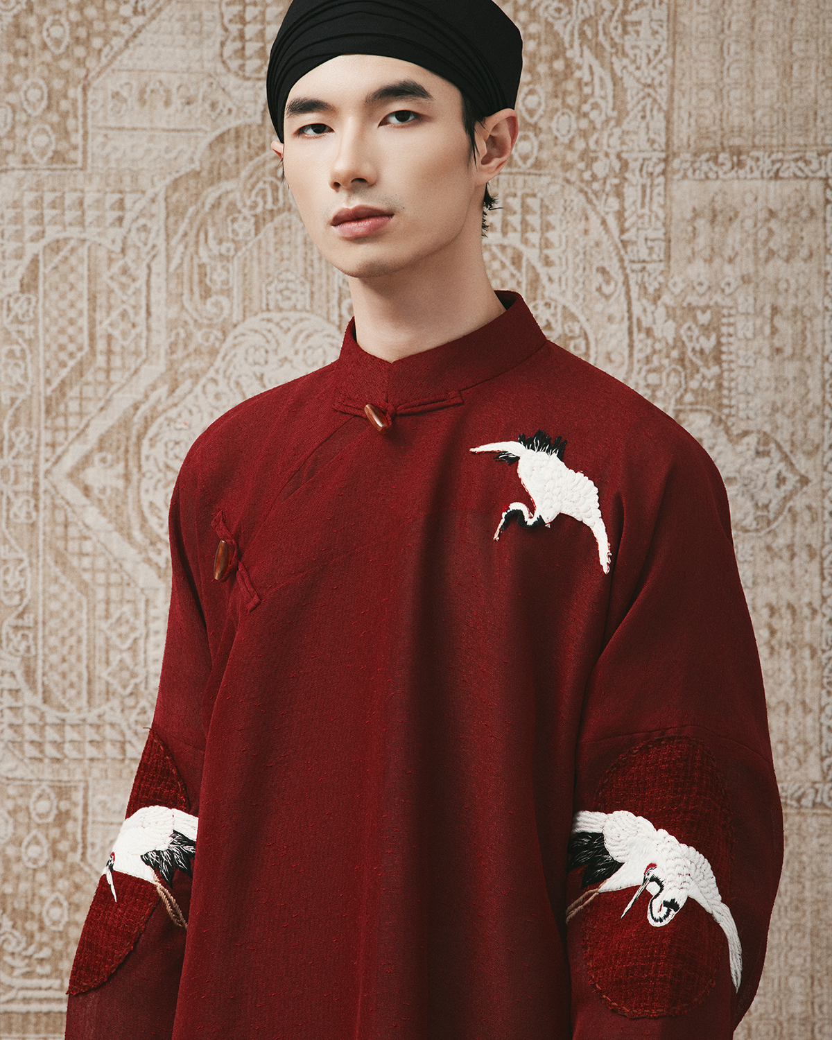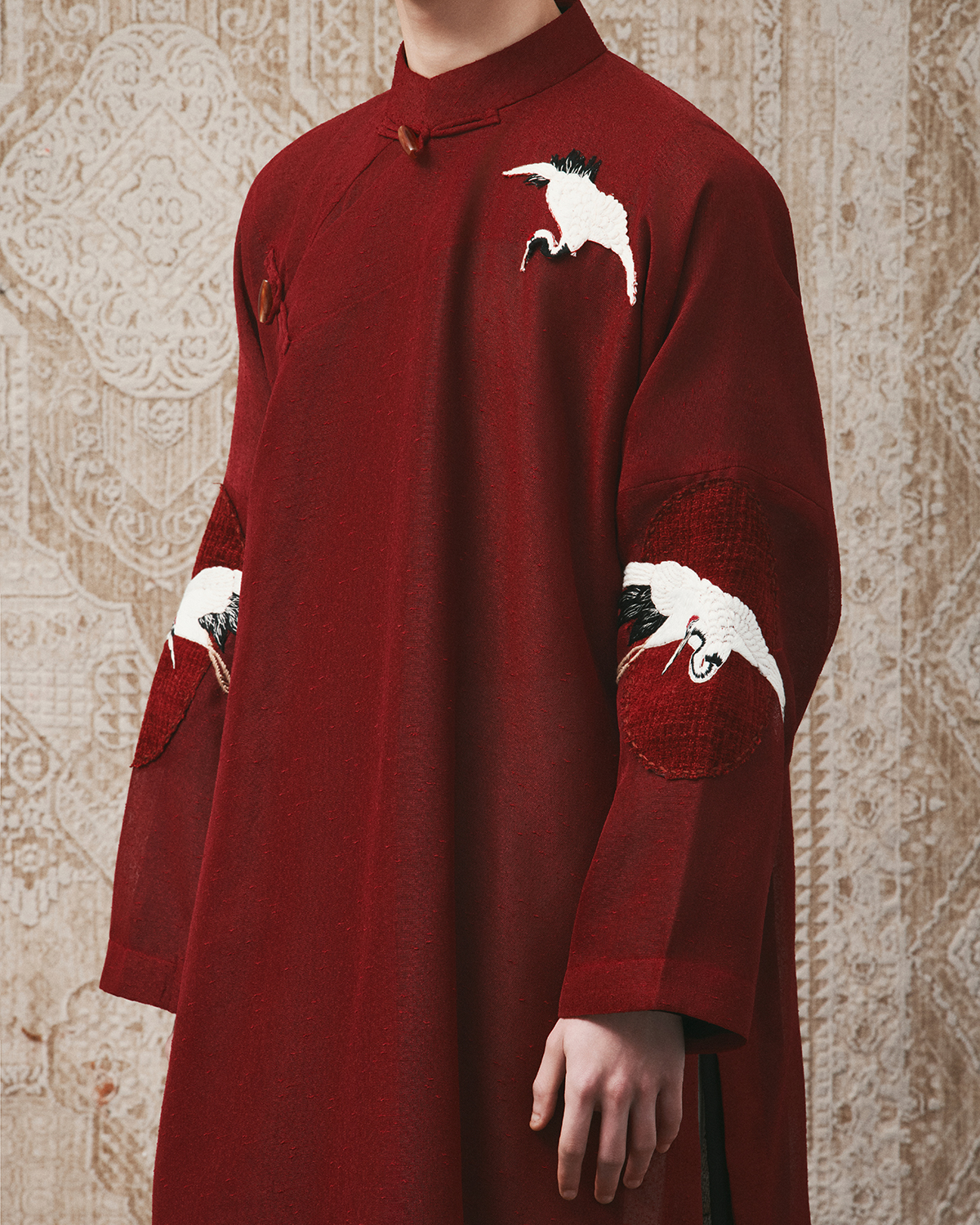 Chất liệu: Tơ sồi Họa tiết: Thêu tay dân gian Chi tiết: Cúc đá Thiên Châu Tây Tạng