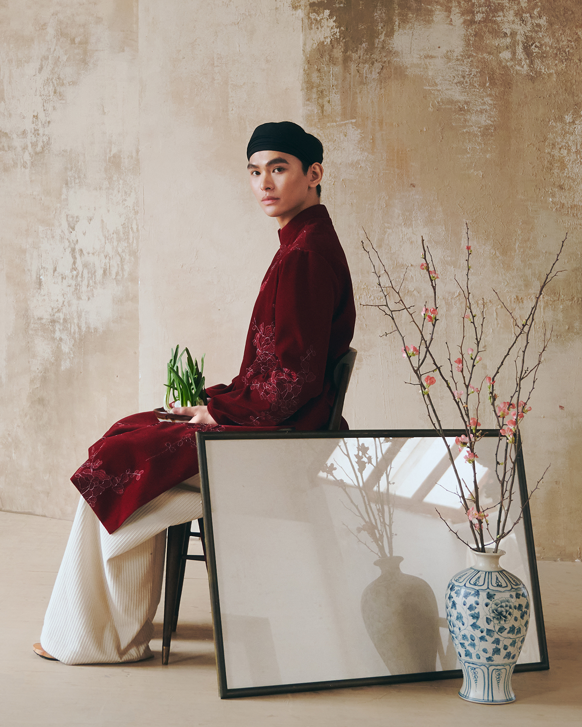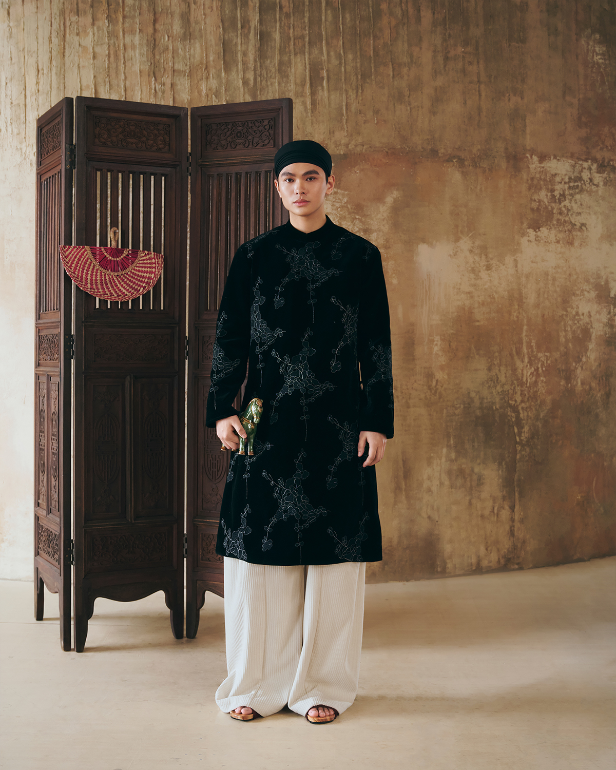 Chất liệu: Nhung Boudin Lót: Lụa tổng hợp Họa tiết: Thêu hiện đại