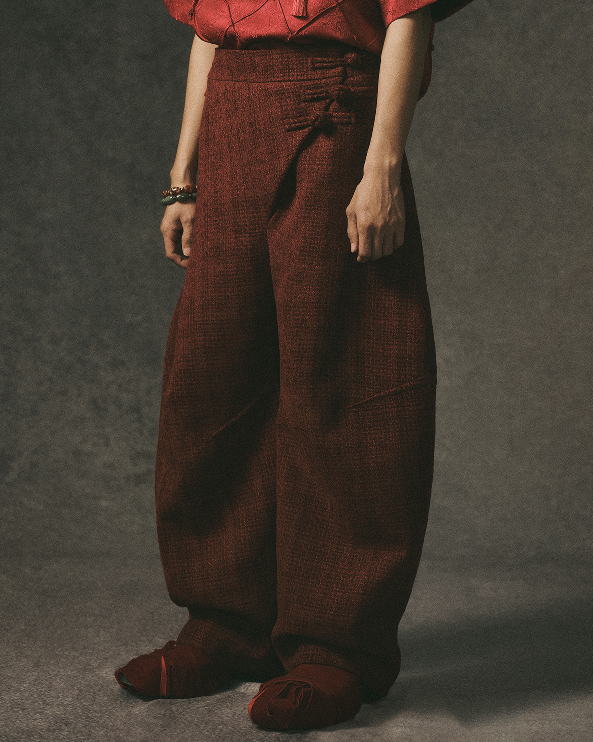 Chất liệu chính: Tweed Chi tiết: 03 cúc tàu tết thủ công tại cạp quần