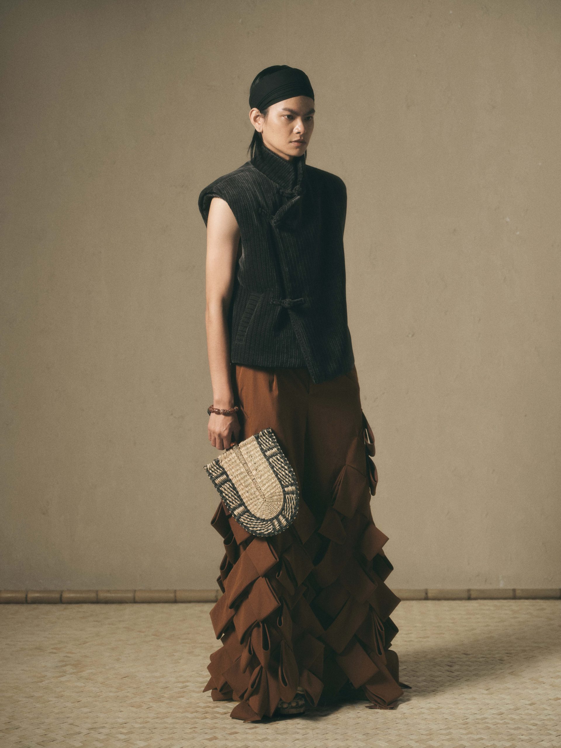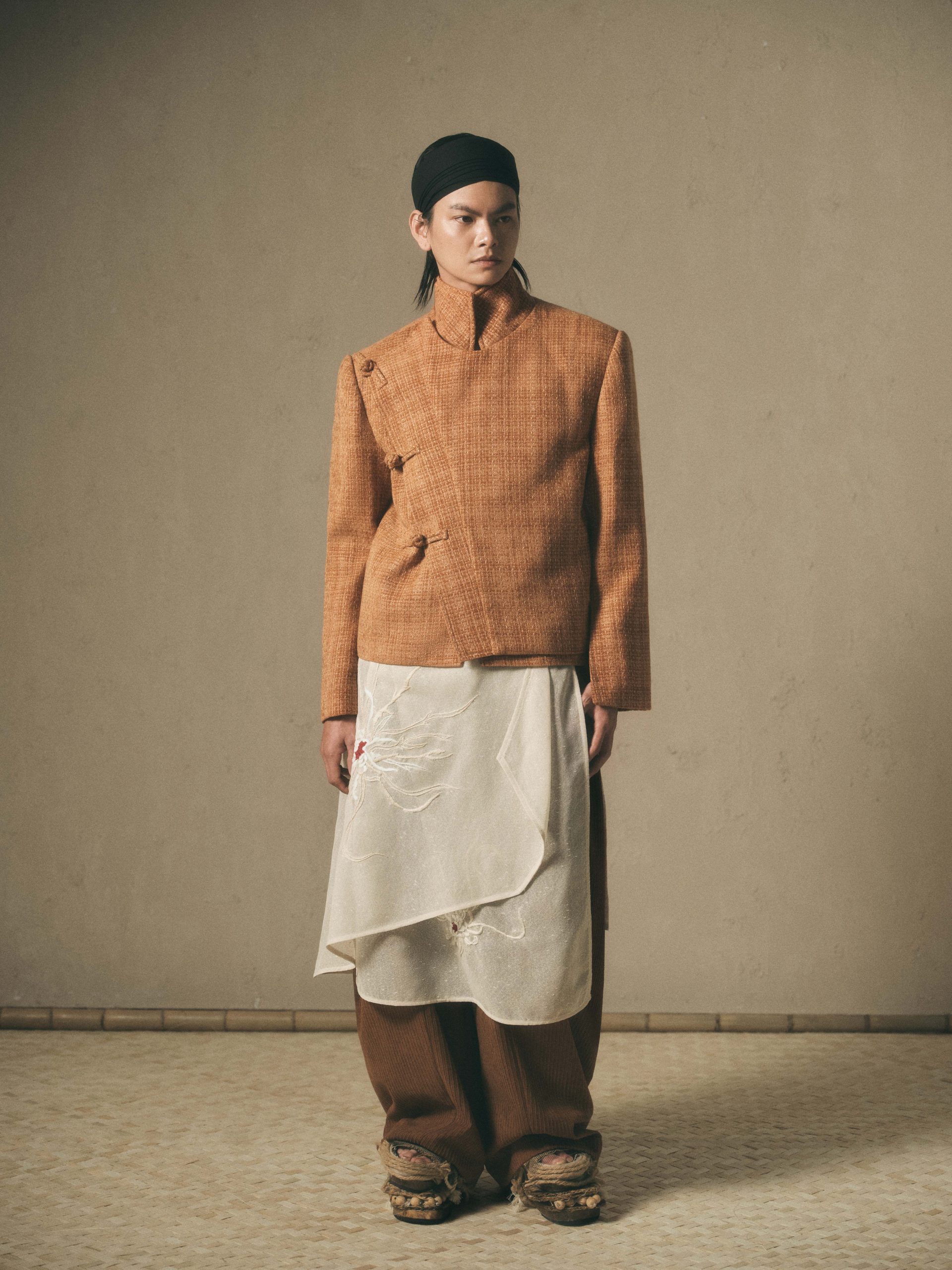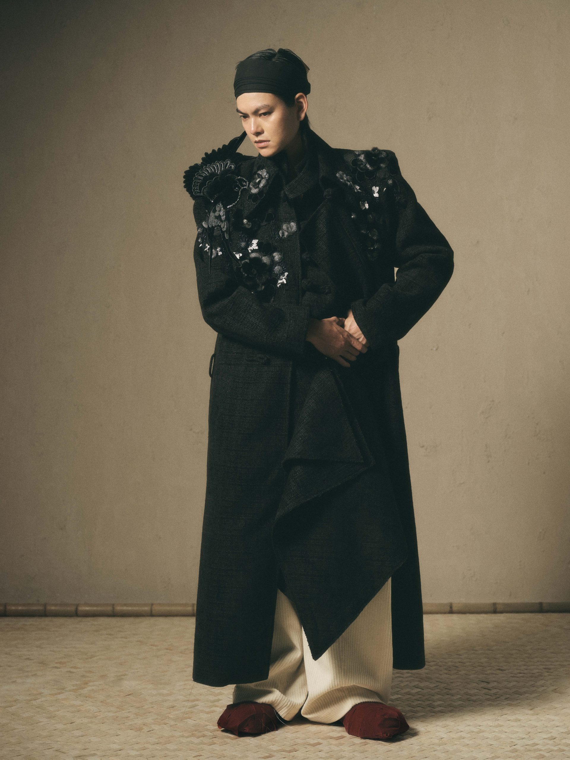 Chương 51 của Maison LONG được lấy cảm hứng và xây dựng từ tinh thần trầm tĩnh cốt cách nền nã của người đàn ông An Nam xưa, nhưng được tái cấu trúc hoàn toàn bằng ngôn ngữ thời trang đương đại. Các thiết kế trong “VĂN” tập trung vào việc tái định hình phom dáng và cảm giác chuyển động của chất liệu. Những nếp gấp nặng, những đường cắt được giản lược; những bề mặt vải thô mộc giàu chiều sâu thị giác, tất cả tạo nên một ngôn ngữ tạo hình tiết chế nhưng dứt khoát.